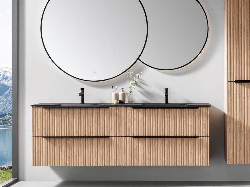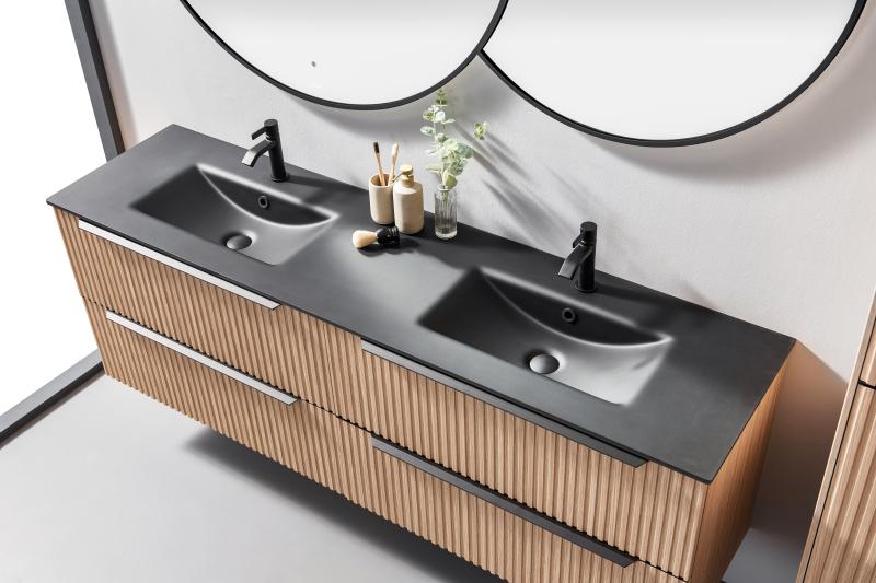 Como Exclusive består av 3 designvalg: Liggende spiler, Stående spiler og Buet spiler. Hver av disse får du i fargene: Amerikansk Valnøtt, Eik, Sort Matt, Hvit Matt, Eden Green, Beige Sand Matt og Lys Grå Matt. Møbelet har BLUM fulldempede skuffeskinner. Anti-skli matte i skuffene. Fronter og sidepanel er i høykvalitets folie. Høyskap med justerbare glasshyller i øvre del. COMO får du breddene: 60 - 75 - 90 - 120 Enkel/ Dobbel, 150 Enkel/ Dobbel, 180 Enkel/ Dobbel og 240 Enkel/ Dobbel. Como har dybde: 46 cm. Vi har hatt enorm suksess med COMO siden vi utviklet den i 2014. Vi laget et konsept hvor sluttbruker enkelt kan bytte front- og sidepanel så ofte de vil! Med vårt konsept kan du ha et eller flere ekstra sett i boden eller kjøpe et ekstra sett om du blir lei fargen du allerede har! Det er rimelig å bytte farger på ditt bad med COMO, da hovedkostnaden ligger i grunnmøbelet. Du kan gjerne velge dagens trendfarge fordi du vet det er enkelt å bytte når du vil. Du kan bytte farger og design på ditt bad når sommer går mot høst, vinter går mot vår, når du skal ha party! eller rett og slett bare fordi du har lyst. Vi har et stort utvalg av servantløsninger, benkeplater og håndtak. LED-Lyslist til alle modellene. LUXE innmat til skuffene i plexiglass og stikkontakt. Håndtak bestilles separat. Les mer om Como-serien her: wwww.scalabad.no *Pris inkluderer Como Grunnmøbel med front- og side-panel samt midtdeler på dobbeltmøbel.