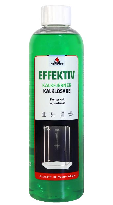 Effektiv Kalkfjerner fra Norenco er en meget effektiv rengjøring for dusjvegger, fliser, porselen, blandebatterier og andre overflater. Effektiv Kalkfjerner løser opp kalk, smuss og svartmugg umiddelbart. Påfør Norenco Effektiv med en fuktig klut, svamp eller pad fra Norenco, og smør over det som skal rengjøres. La virke i 1-2 minutter og skyll godt av med vann. For inngrodd kalk, anbefales Norenco Glassfornyer etter bruk av Effektiv Kalkfjerner. Effektiv fjerner overflødig kalk og Norenco Glassfornyer fjerner inngrodd kalk.