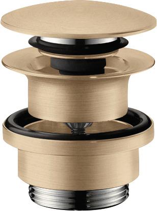 Push-Open ventil i høy kvalitet og overflate i børstet bronse. Med Push-Open ventil fra hansgrohe er det å åpne eller lukke servantavløpet enkelt: trykk bare på avløpet ovenfra - ferdig. Ventilen er laget av slitesterk messing og passer til alle servanter med et standard G 1¼ tommer avløp. Hetten kan tas av for rengjøring om nødvendig. En annen fordel: push-open ventilen kan kombineres med et armatur som ikke krever en trekkstang for avløpet og gir et mer elegant uttrykk. Push-Open ventilen brukes på servanter med overløp. For servanter og bolleservanter uten overløp er et ikke-låsbart avløpssett tilgjengelig som et alternativ (# 50001140). Eksklusiv overflate for individuell baderomsdesign Overflaten i børstet bronse setter en harmonisk samspill og passer godt sammen med varme materialer som tre og tekstiler. Sammen med andre hansgrohe-produkter i samme farge gjør det det personlige drømmebadet mulig.