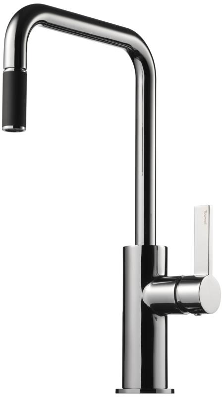 Kjøkkenbatteri med uttrekkbar hånddusj.