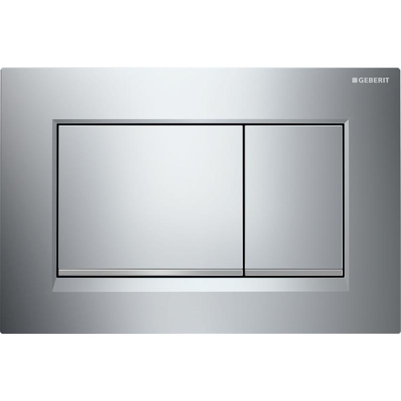 Sigma30 betjeningsplate for aktivering av skyll med Sigma innbyggingssisterner. Sigma30 er med dobbel skyllefunksjon, i blankforkrommet plast med matt forkrommet designstriper. Finnes i flere elegante farger. Monteres enkelt i front. Betjeningsplaten setter ikke bare prikken over i-en på badet ditt, den kan også tilby ulike funksjoner som luktavsug, innsats for DuoFresh duftpinner, samt flere skyllefunksjoner for å tilpasse vannforbruket etter behov. Oppgrader badet ditt med Geberit Sigma betjeningsplater og la funksjonalitet møte eleganse på en intelligent måte.