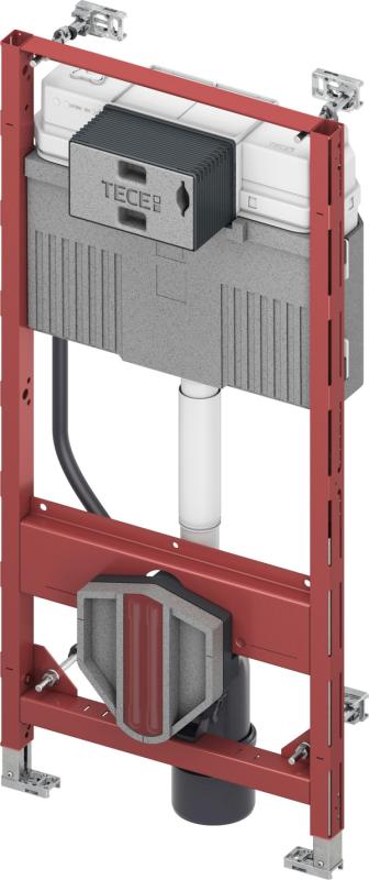 "TECEprofil innbygningssisterne med Uni 2.0 sisterne. Innbygningssisterne med "easy fit" montasje av betjeningsplate. Egnet for installering inne i eller utenpå vegg eller i forbindelse med TECEprofil Profilrør. Kun for frontbetjening. Oppfyller nivå 5 i BREEAM-NOR 2016 Generell informasjon: Sikkerhetstank laget av slagfast plast, testet i henhold til EN 14055. Sisternetank og innmat ferdig montert fra fabrikk og forseglet . 10 liters tank, leveres ferdig innstilt på 6 liters spylevolum, kan enkelt justeres til 4,5/7,5/9 liter spylemengde, 3 liter fast innstilling på redusert spyling, Restvolum kan brukes til umiddelbar rengjøringsspyling. Isolert mot kondens. Hele programmet med betjeningsplater passer til innbygningssisternene. Fullt eller redusert spylevolum, bestemmes ved valg av betjeningsplate med to knapper. Støysvak hydraulisk påfyllingsventil, armaturgruppe 1 i henhold til DIN 4109 . Bolteavstand for montering av skål er 180mm og 230mm Leveres komplett: Ramme av profilrør 2stk. M12 bolter med muttere . 4stk justerbare veggfester. DN 90 klosettbend, med 90/110 overgang i PP. Overgang også egnet for vannrett tilkopling .Anslutningsdeler DN 90, inklusive terser. Justerbare ben 0-200mm med brems. Tilkoblingsboks med beskyttelse og trekkerør for tilkobling av dusj-toalett (sjekk posisjon), med koblingsboks og deksel for transformator."